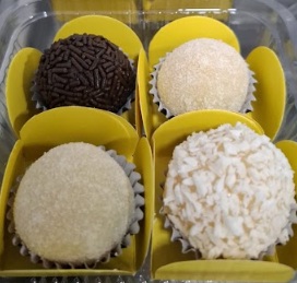 Kit com 4 brigadeiros (Ferreiro Rocher,Casadinho,Brigadeiro,Supresa de Uva e Beijinho)